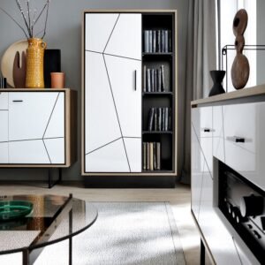 Summer Bookcase with 1 Door in Jackson Hickory and White High Gloss