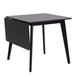 Elevate your dining area with this stylish square table, featuring a rich oak veneer top paired with a sleek matte black base. Thoughtfully designed with integrated extension leaf storage, it combines contemporary elegance with practical functionality, perfect for any occasion.