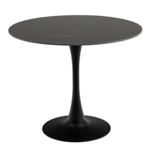 Refresh your dining space with this stylish square table from Home Store UK. It boasts a matte black ceramic top and black painted MDF, while the sturdy trumpet base in matte black powder-coated steel adds a contemporary elegance.