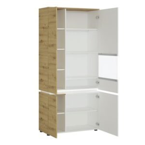 Luke 4 Door Tall Display Cabinet LH/RH (including LED lighting) in White/Platinum and Oak