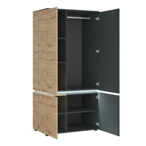 Luke 4 Door Wardrobe (including LED lighting) in White/Platinum and Oak