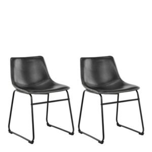 Relax in style with this sophisticated dining chair from Home Store UK. Upholstered in vintage black PU leather with cream and zigzag stitching accents, it exudes timeless elegance. The sturdy matte black steel sledge base provides a sleek and modern touch, making it a perfect addition to elevate any dining space.