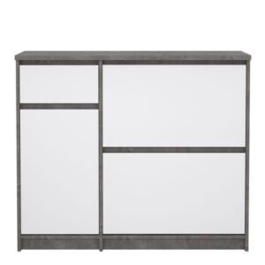 Sydney Shoe Cabinet with 2 Flip Down Doors 1 Door and 1 Drawer in Concrete and White High Gloss