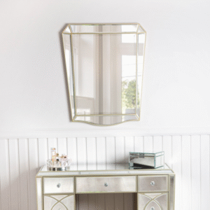 This Pristina wall mirror is as gorgeous as it is functional. The quirky quadrilateral form of the mirror is enhanced by an elegant champagne trim and design.