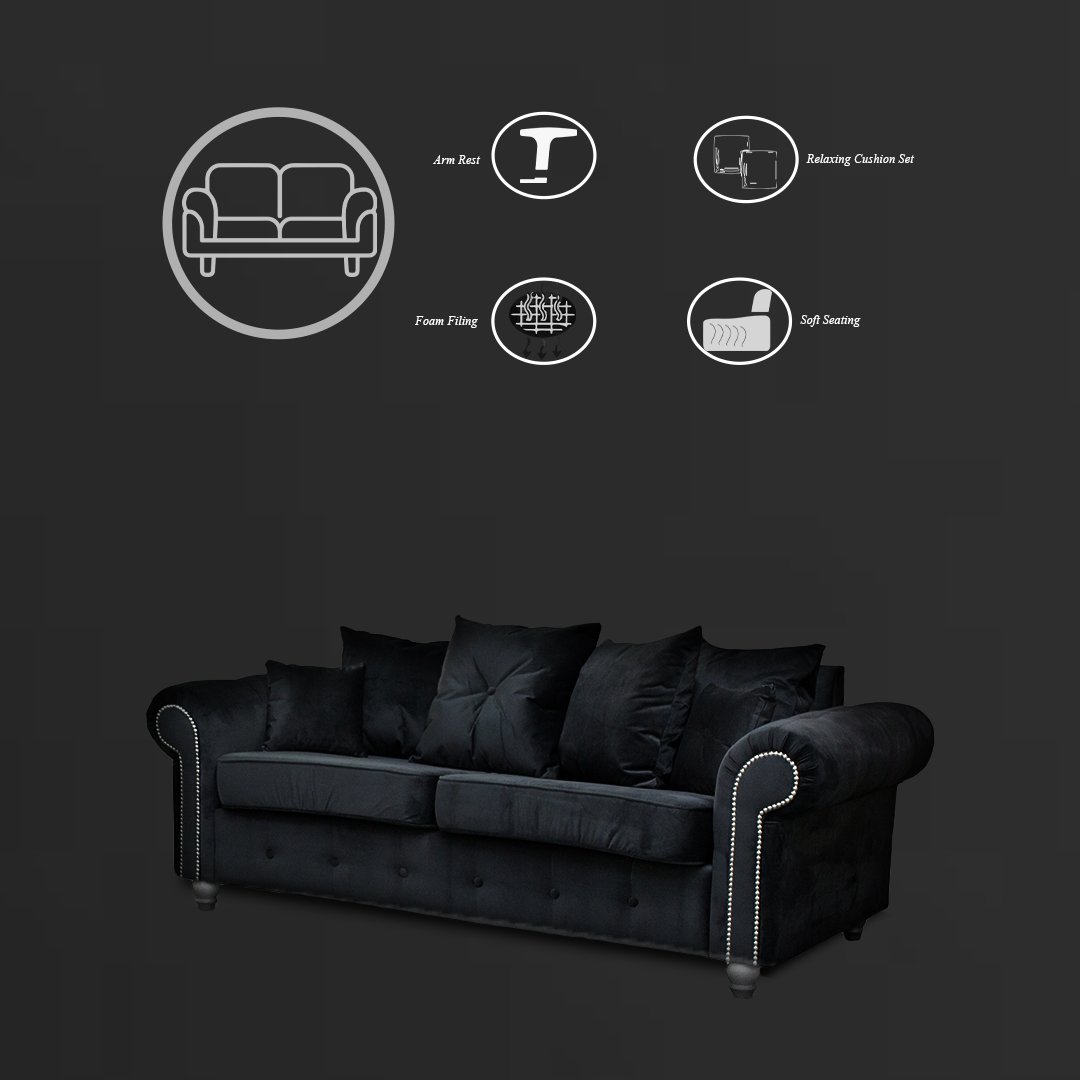 ASHWIN BLACK VELVET SOFA SET