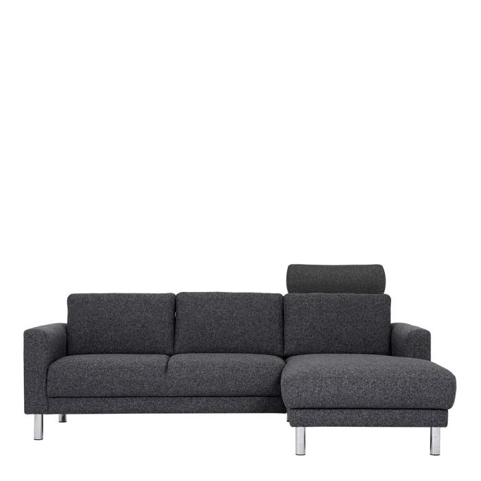 Simply stylish with sleek lines and cool chrome feet, this chaiselongue sofa is the perfect fit to create a cosy spot in any room. The eye-catching Baker sofa range offers a generous modern design while being irresistible comfortable. Available in Nova Anthracite or Nova Light Grey.Optional: Baker Neckpillow in Nova Anthracite