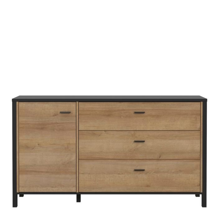 Ben 1 Door 3 Drawer Sideboard in Matt Black/Riviera Oak