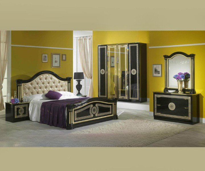 • Product Name: Ben Company New Serena Padded Black and Gold Italian Bed Group Set with 4 Door Wardrobe.