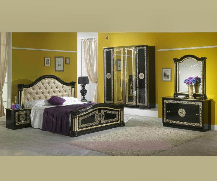 • Product Name: Ben Company New Serena Padded Black and Gold Italian Bed Group Set with 6 Door Wardrobe.