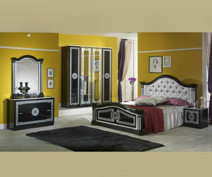 - Product Name:Â Ben Company New Serena Padded Black and Silver Italian Bed Group Set with 6 Door Wardrobe.