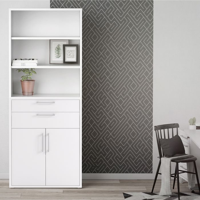 Bennett Bookcase 3 Shelves with 2 Drawers 2 Doors