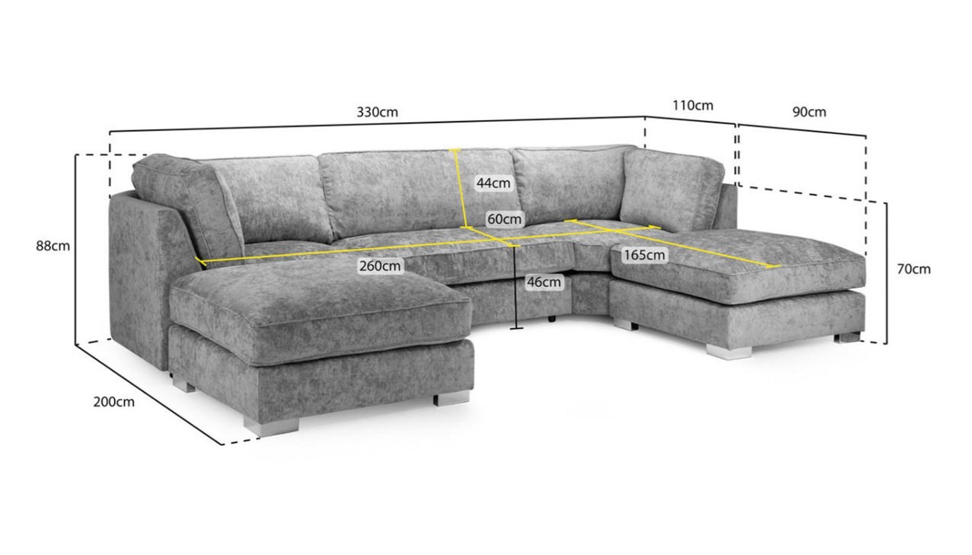 - Generous Dimensions: 336cm width, 201cm depth, and 88cm height.