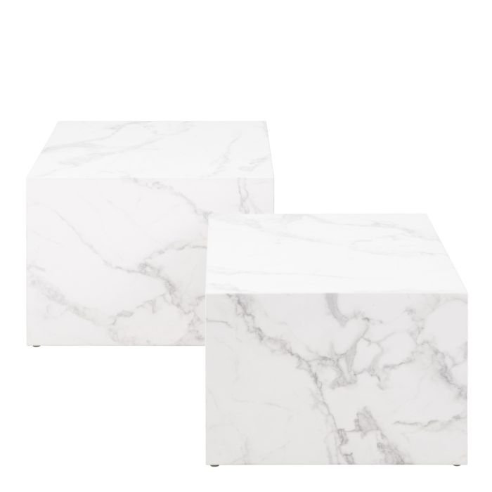 Box Square Coffee Table Set in White Marble Carrara.