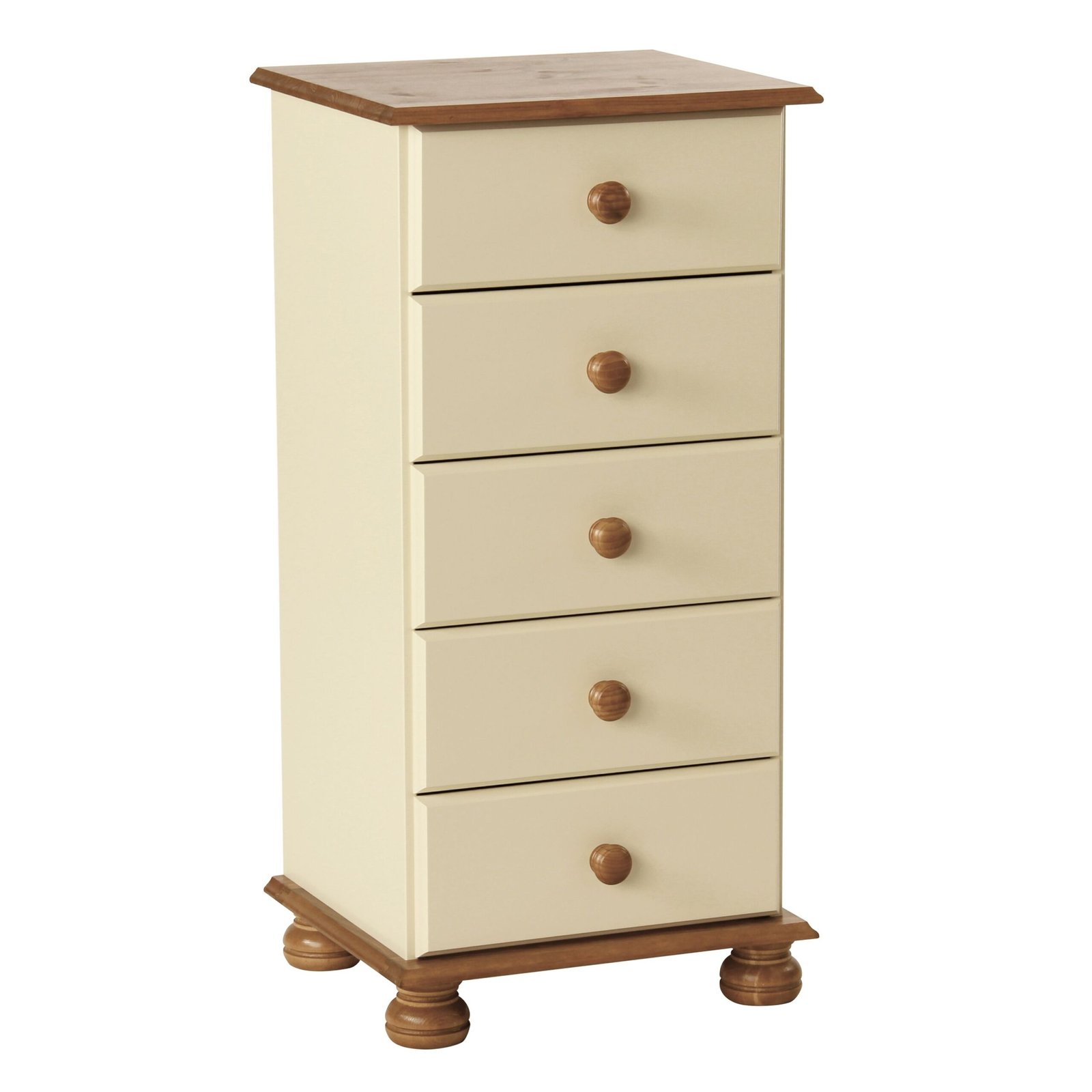 Bramwell 5 Drawer Narrow Chest in Cream/Pine