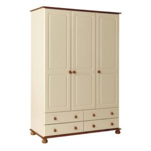 Bramwell 3 Door 4 Drawer Wardrobe in Cream/Pine
