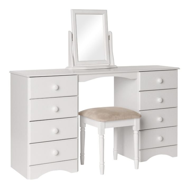 Single Dressing Table in White In attractive white MDF, this can be used as a stylish dressing table or as a desk. It would be perfect for the single bedroom or home office. The 4 drawers offer plenty of storage space with room on top for a mirror and photos, or as a desk gives plenty of workspace. Gliding runners with cam lok drawer fronts, crafted from white MDF and finished with a smooth lacquer makes this a durable and attractive choice for any bedroom.