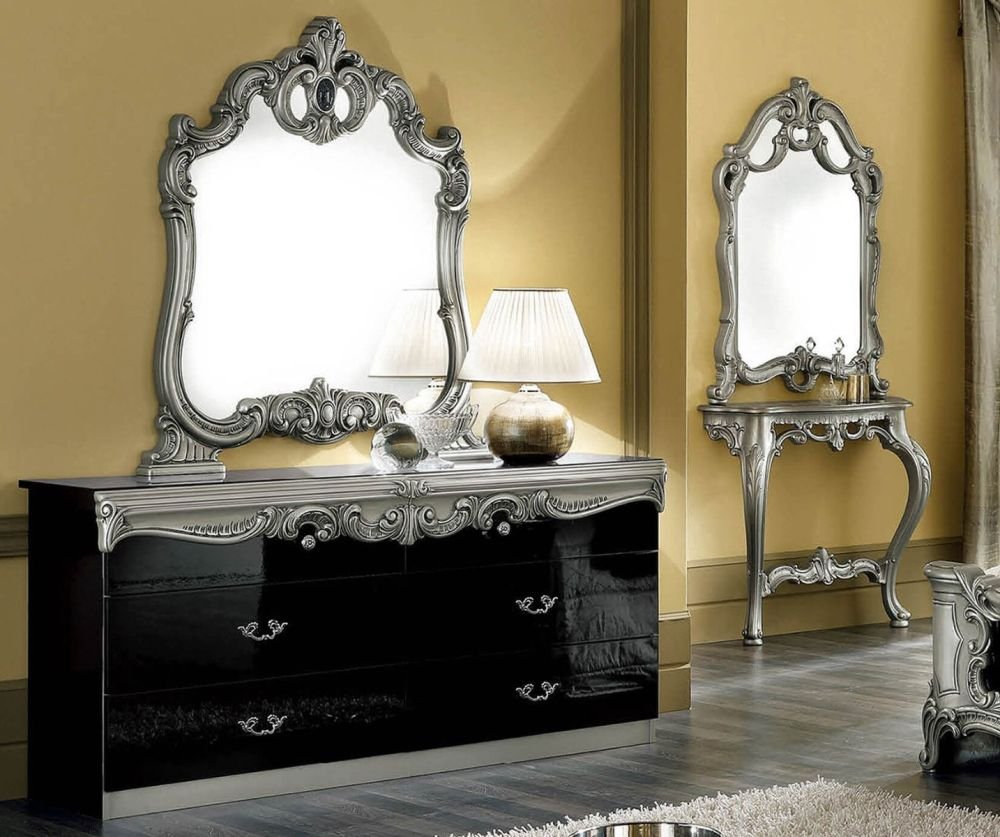 Camel Group Barocco Black and Silver Finish Italian Bedroom Set with 6 Drawer Dresser