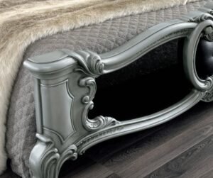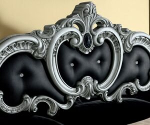 Barocco Bedroom Set is looks superb and will look fantastic in a modern bedroom setting. This Bedroom set Including Bed +2 Nigh Tables + Mirror + Double Dresser + 4 Door Wardrobe. This Bedroom set constructed from strong, and quality Italian materials and finished in a delicate tones of black, stylish silver handle and silver decorative detail on frames and columns would look great in any bedroom setting.