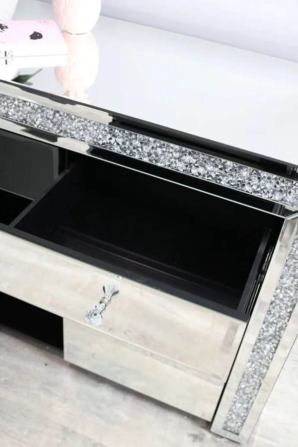 Mirrored panels and crystal handles decorate the front.