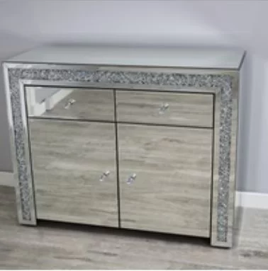 Mirrored Sideboard with diamond crushed edging with 2 doors and 2 drawers
