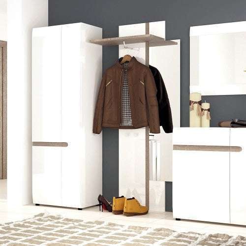 1 Drawer 2 Door Sideboard 85 cm Wide in white with an Truffle Oak Trim. Unconventional design – a proposal for the followers of the latest trends. The clever mix of scratch resistant white melamine with beautiful high gloss fronts and oak melamine trim makes this top quality collection of furniture the ideal destination for the most modern of homes, the massive range that includes many cabinets and wall units fulfils every storage and display option.
