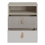 Be the first to review “Colson 2 Drawer Bedside Cabinet in Light Walnut, Grey Fabric Effect and Cashmere”
