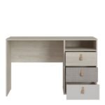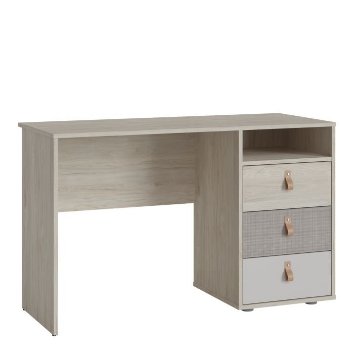 Colson 3 Drawer Desk in Light Walnut, Grey Fabric Effect and Cashmere