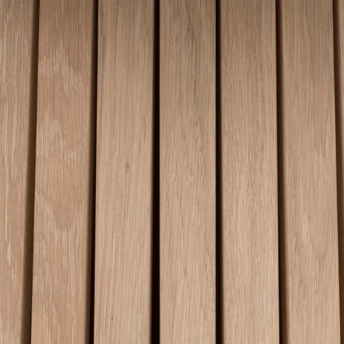 Embrace the beauty of minimalist design with this round dining table, showcasing a white pigmented oiled oak veneer top and a sturdy pillar base. The lamella design introduces a subtle textural detail, making it a refined centerpiece for any dining area at Home Store UK.
