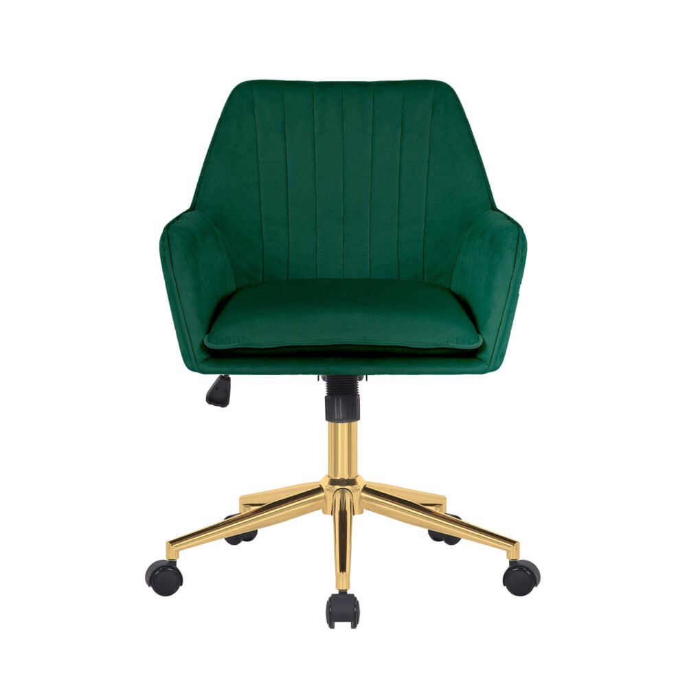 Designed for Comfort: Green Velvet Office Chair with Gold Legs: