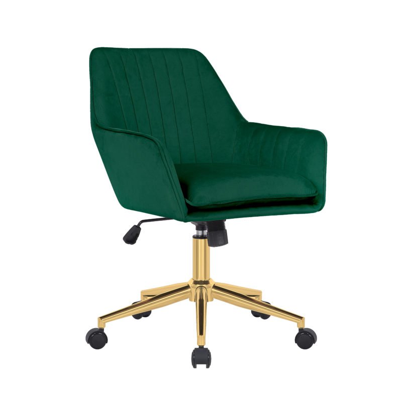 Comfy and Fancy Green Velvet Office Chair with Gold Legs at HomeStoreUK:
