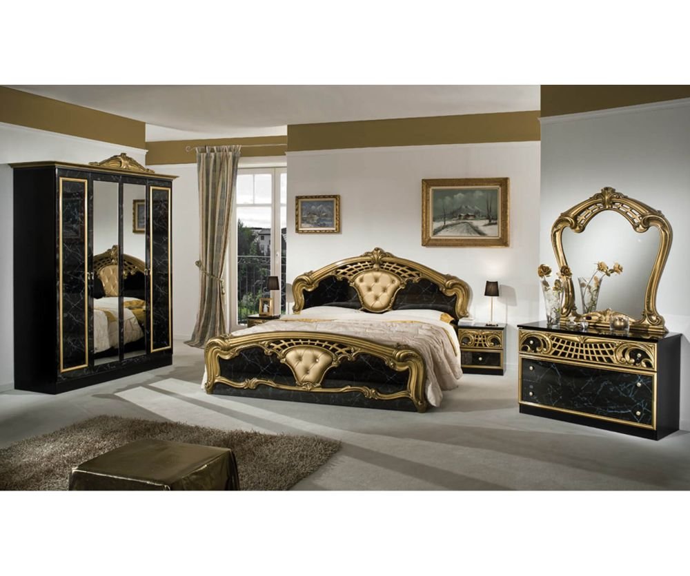 Dima Mobili Lara Black and Gold Bedroom Set with 4 Door Wardrobe Italian Bedroom set Home Store UK