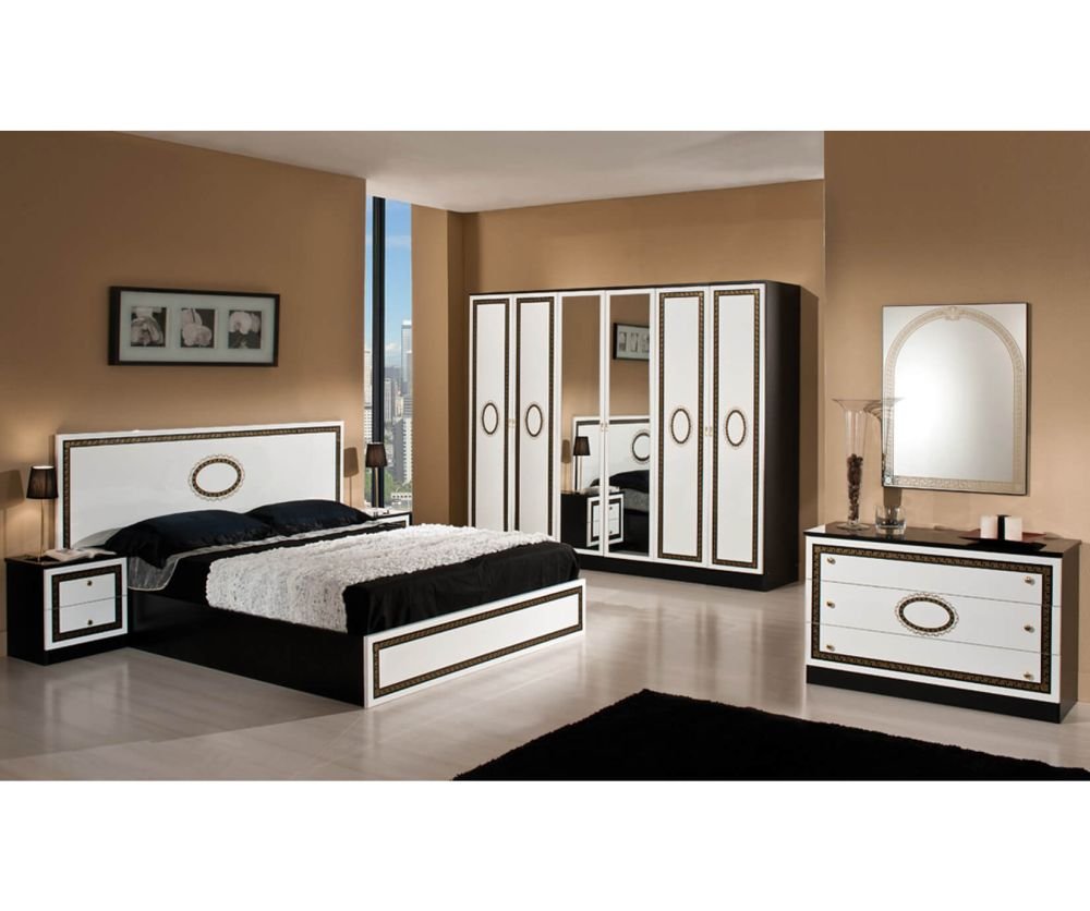 Dima Mobili Paris Black and White Bedroom Set with 6 Door Wardrobe