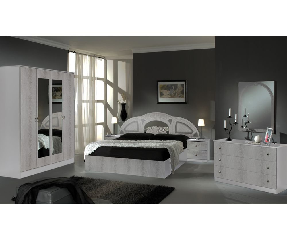 Dima Mobili Safa White and Silver Bedroom Set with 4 Door Wardrobe