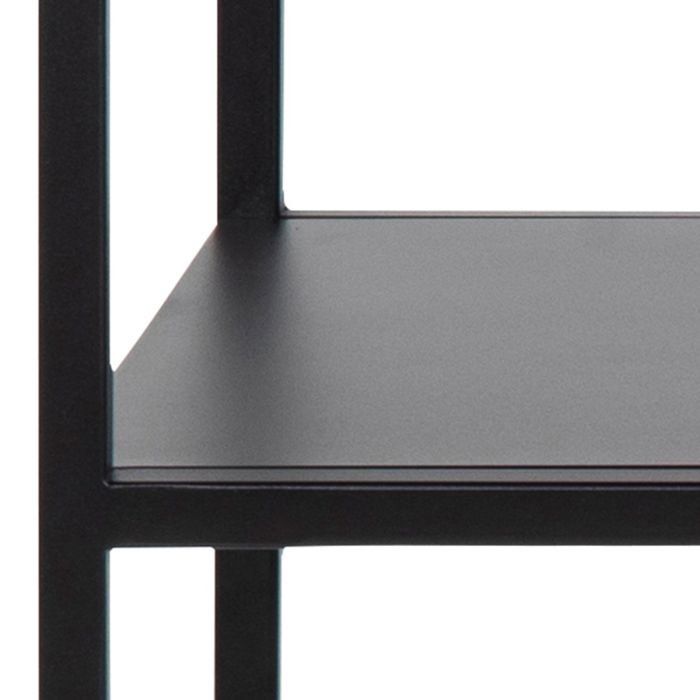 This striking console table from Home Store UK is designed with a matte black rough powder-coated steel top, shelf, and base, bringing an industrial charm to any room. Its sleek lines and modern appeal offer both style and practicality, while the shelves provide stylish storage solutions.