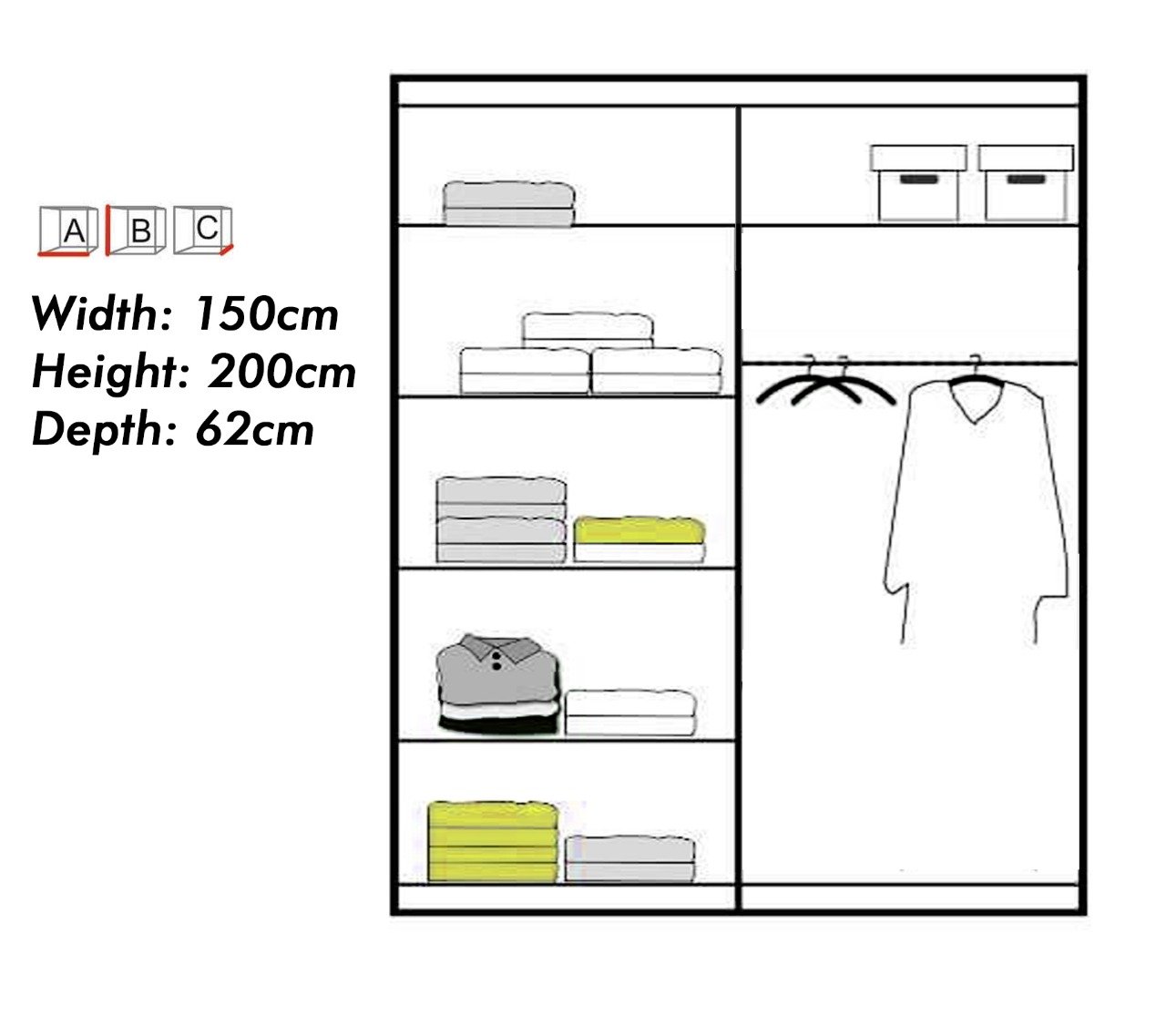 The Mayfair Mirrored Sliding Door Wardrobe comes with giving your bedroom a classy look! With both hanging space and shelf storage, you can store coats, suits, tops, T-shirts, towels with room for shoes, bedding and storage boxes.