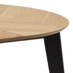 Bring timeless elegance to your dining room with this stunning round table, featuring an oak effect top adorned with a classic herringbone pattern. Supported by a robust matte black base, it provides a sophisticated contrast, creating a warm and inviting atmosphere for gatherings. Discover this exquisite piece at Home Store UK.