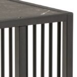At Home Store UK, this side table showcases a stunning black polished marble top paired with a matte black powder-coated steel base. Its sleek design adds a touch of sophistication to any living space, offering the ideal balance of elegance and contemporary style.