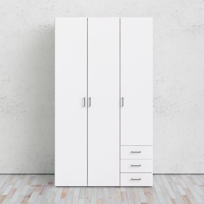 Haven Wardrobe 3 Doors 3 Drawers in White 2000.