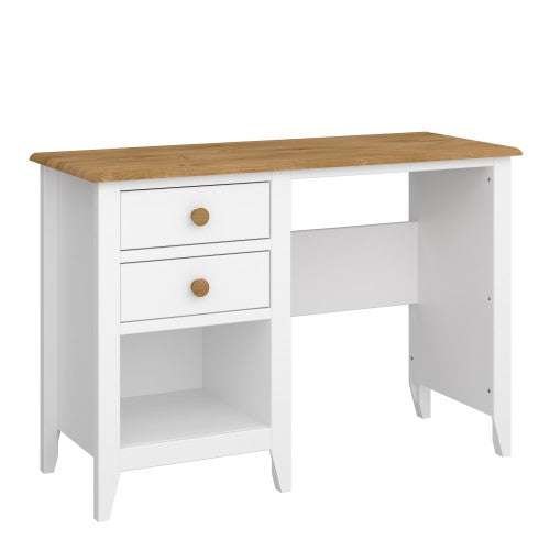Lilly Corner Desk 2 Drawers in White and Oak.