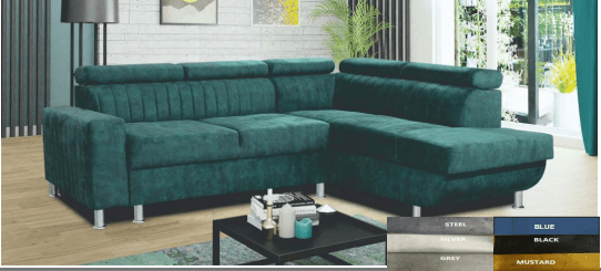 A combination of modern style with elegant design.   The use of wave springs and the highest quality foam guarantees the durability of the product. The corner is made with attention to every detail. In addition, the whole thing is trimmed with a  decorative seam.  The corner sofa has decorative legs that give it character.