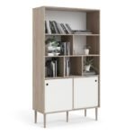 Hunt Bookcase 2 Sliding Doors in Jackson Hickory Oak and Matt White