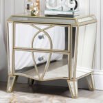 The 2 drawer cabinet will bring a touch of refinement to any room. It features mirror panels with champagne trim and drawer detailing. Crystal handles on the drawers, a gently curved bottom edge and tapered legs complete this elegant piece which would work equally well in a bedroom or as a storage and display unit in any room.