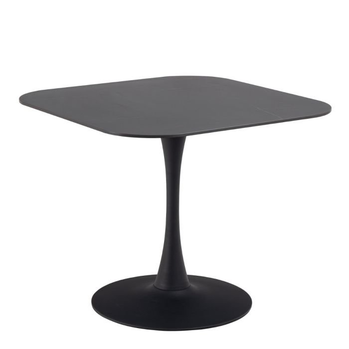 Refresh your dining space with this stylish square table from Home Store UK. It boasts a matte black ceramic top and black painted MDF, while the sturdy trumpet base in matte black powder-coated steel adds a contemporary elegance.