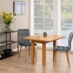 Introducing our fully foldable oak dining table at Home Store UK, extending from 45 cm to 90 cm. This versatile design is an ideal solution for compact spaces, providing comfortable seating for two while maintaining a stylish look.
