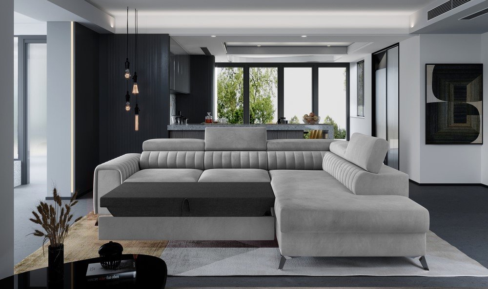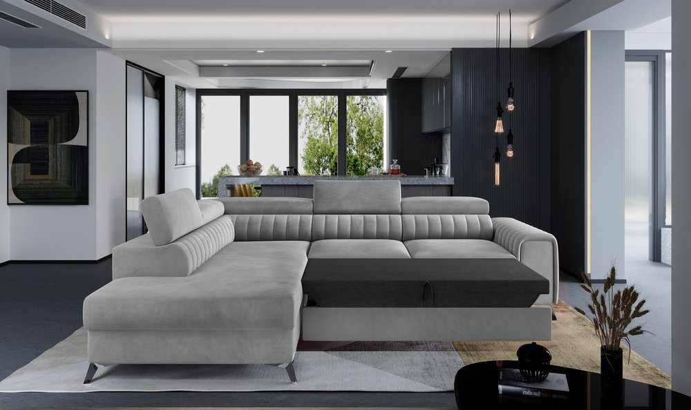 The Laurence Corner Sofa Bed Plush Velvet from Home Store UK combines elegance, comfort, and functionality. Available in grey for both right-hand and left-hand configurations, this sofa bed is crafted from premium velvet fabric, adding a luxurious touch to your living room. Key features include: