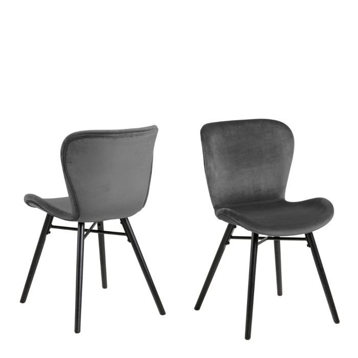 Enhance your dining space with these elegant dining chairs from Home Store UK. Upholstered in soft grey fabric and set on a matte black lacquered rubberwood base, this set of two is ideal for achieving a coordinated and sophisticated look.