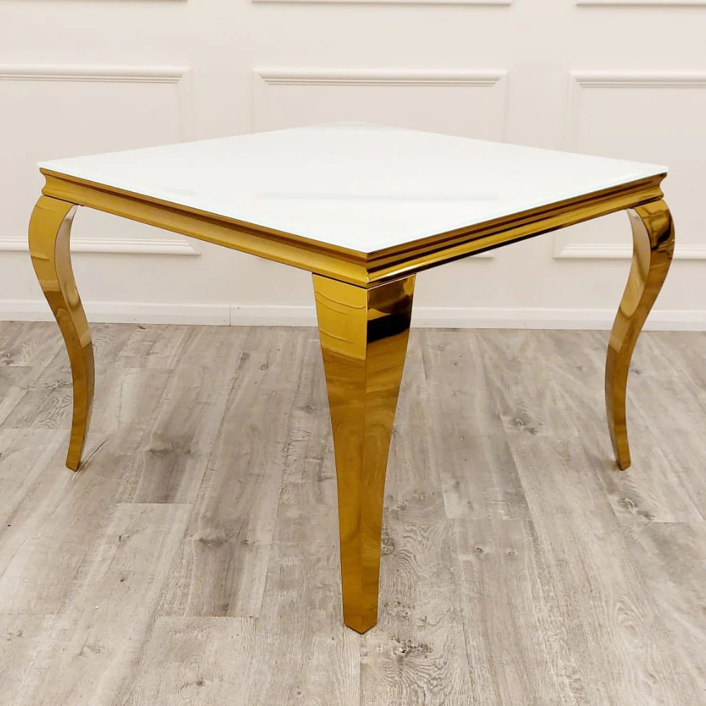 Louis Gold 1m Dining Table with White Glass