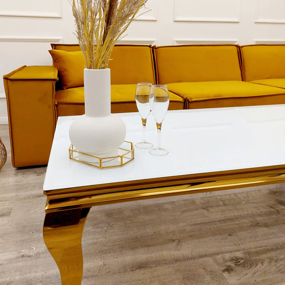 One common feature of living rooms is the coffee table, as seen in our Louis Gold Coffee Table with White Glass Top. It’s your outfit’s focus and reflects your individuality. We have a vast collection of this furniture at HOMESTORE UK, so you can find one that fits your needs and makes your living space look better.