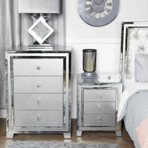 HUSK- Grey Mirror 3 Drawer Bedside Cabinet