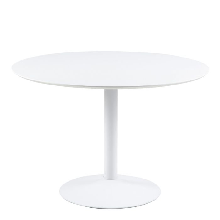 Discover our stylish dining table at Home Store UK—a modern classic featuring a pristine white MDF top. Its sleek white powder-coated steel trumpet base not only adds durability but also enhances the clean, contemporary look of your space.